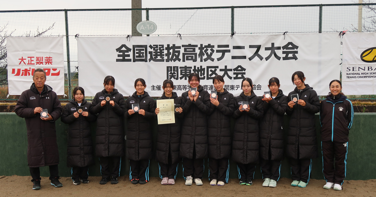 この大会は、関東各都県2校が出場、合計16校が参加し、上位8校までが2026年3月福岡県博多で行われます第48回全国選抜高校テニス大会に出場できます。東京都の代表は、本校(東京都1位)と早実(東京都2位)が出場しました。